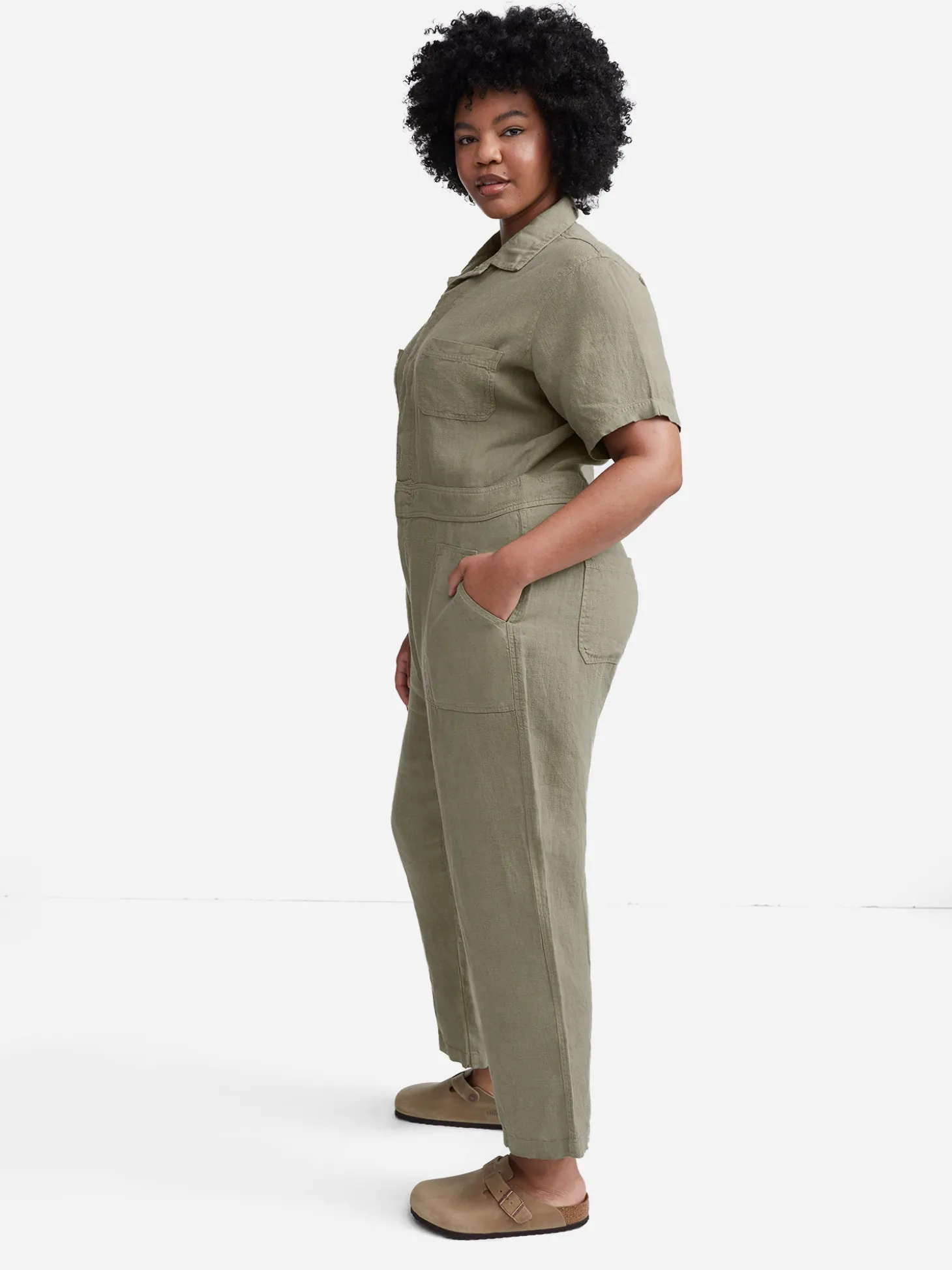 Our Version Of The Classic Utility Jumpsuit Is Made Fresh And Breezy In 100% Natural Linen. The Standard Collar, Hidden Button Placket, And Patch Pockets Make The Look, But The Comfy Fabric And Relaxed Fit Is What Will Make You Want To Wear It Again And Again.