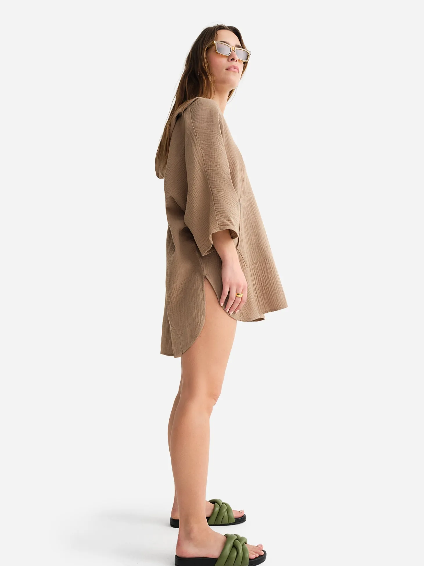 The Organic Gauze Cover Up Features An Oversized Fit That Is Perfect For Lounging By The Pool, Beach, Or Anywhere You Go. This Versatile Style Can Also Be Worn As A Lightweight Hoodie And Is Made With 100% Organic Cotton At An Ethical, Women Led, Gots Certified Factory In India.